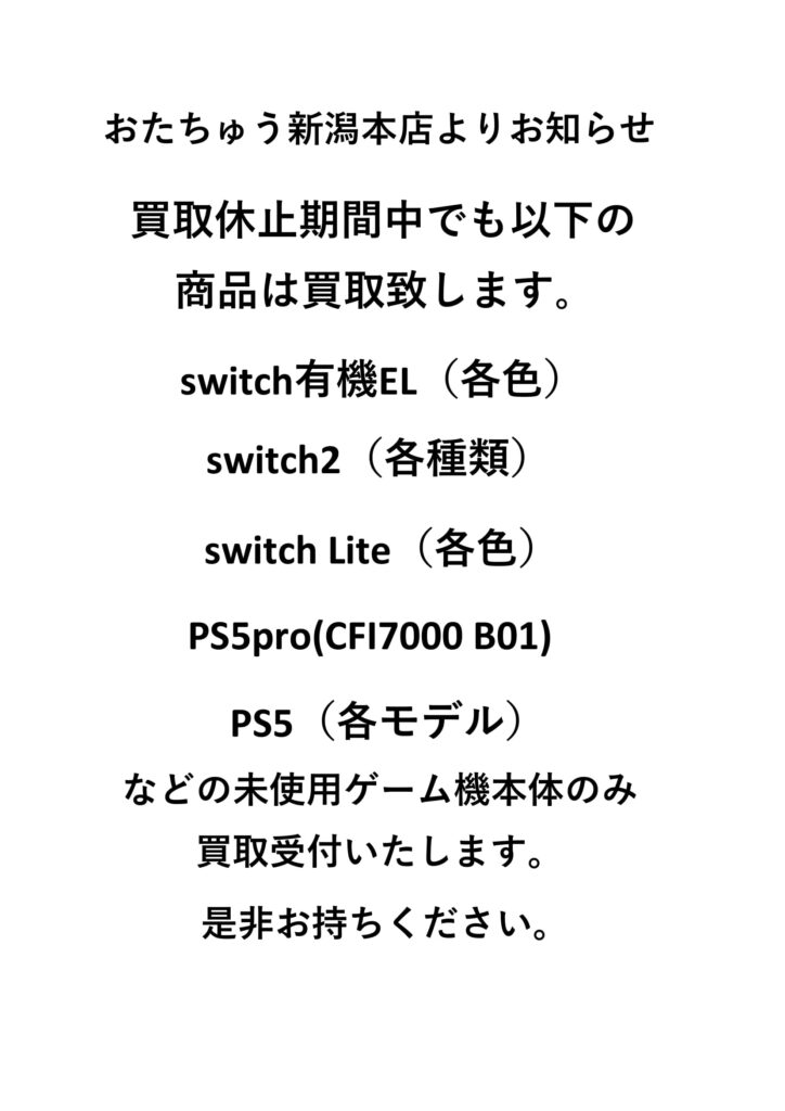 買取スタッフ不在の為11/10〜11/14まで買取受付を休止させていただきま…