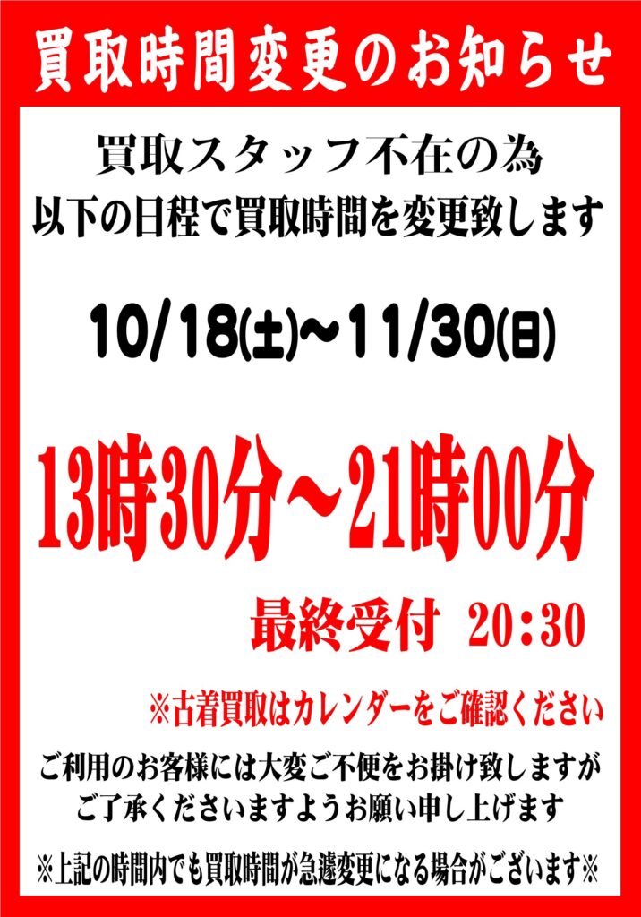 R7年6月より買い取り時間が変更になります。 ご利用のお客様には大変ご…