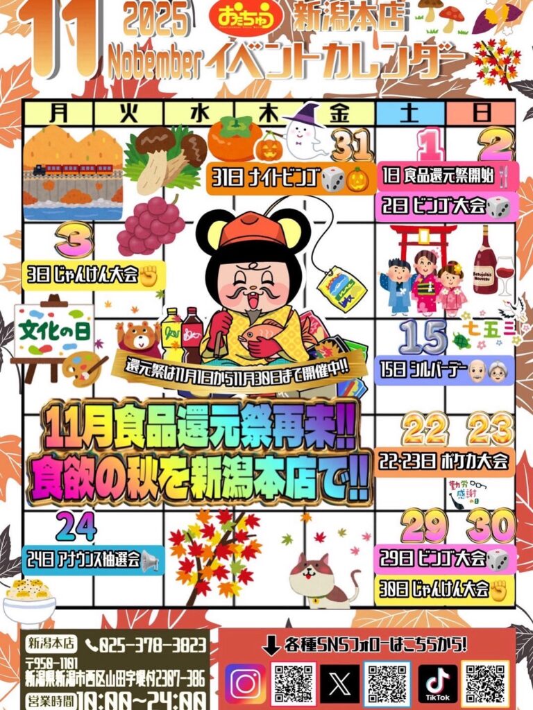 ★アナウンス抽選会開催★ 開催日時:11月24日(月・祝) 16:30~抽選券…