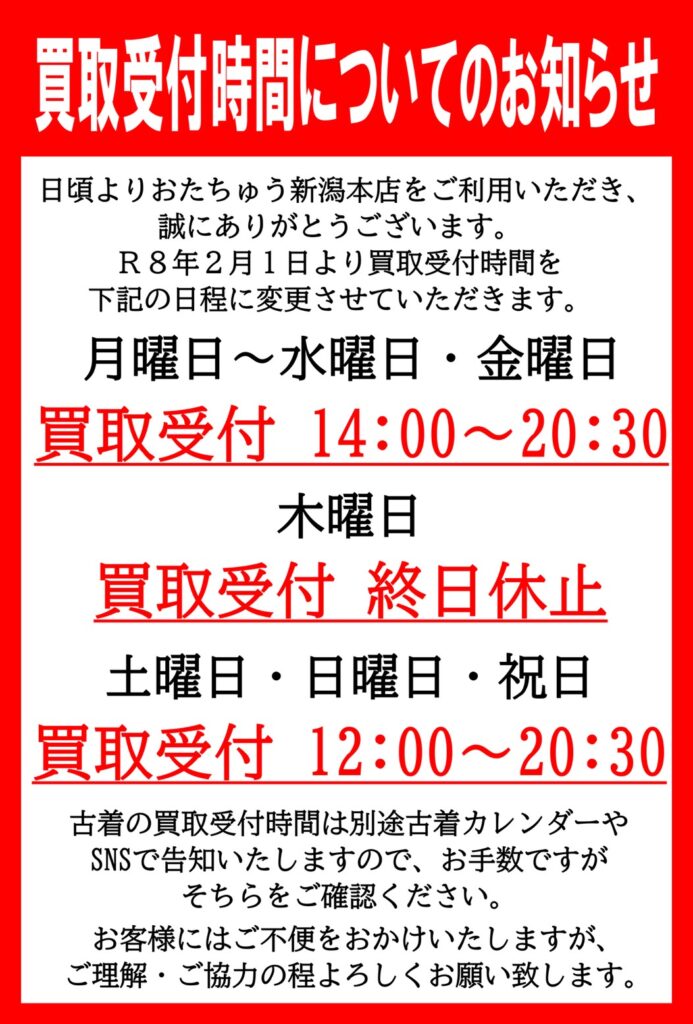 R8年2月より買取受付時間が変更になります R8年2月1日より買取受付時間…