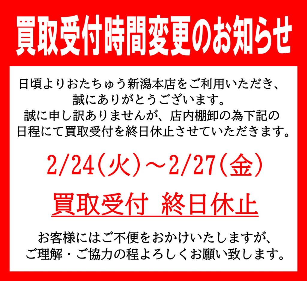 買取受付時間についてのお知らせ 誠に申し訳ございませんが、店内棚卸…