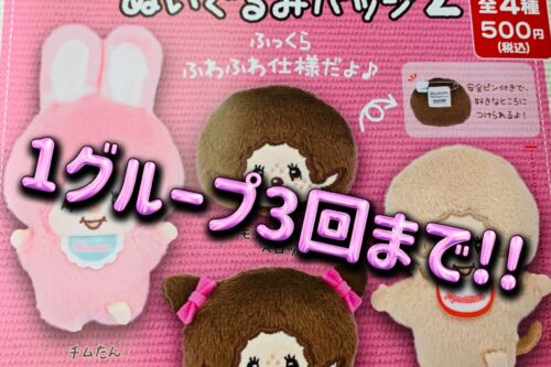 以上3点のガチャは、1グループ1回とさせていただきます。