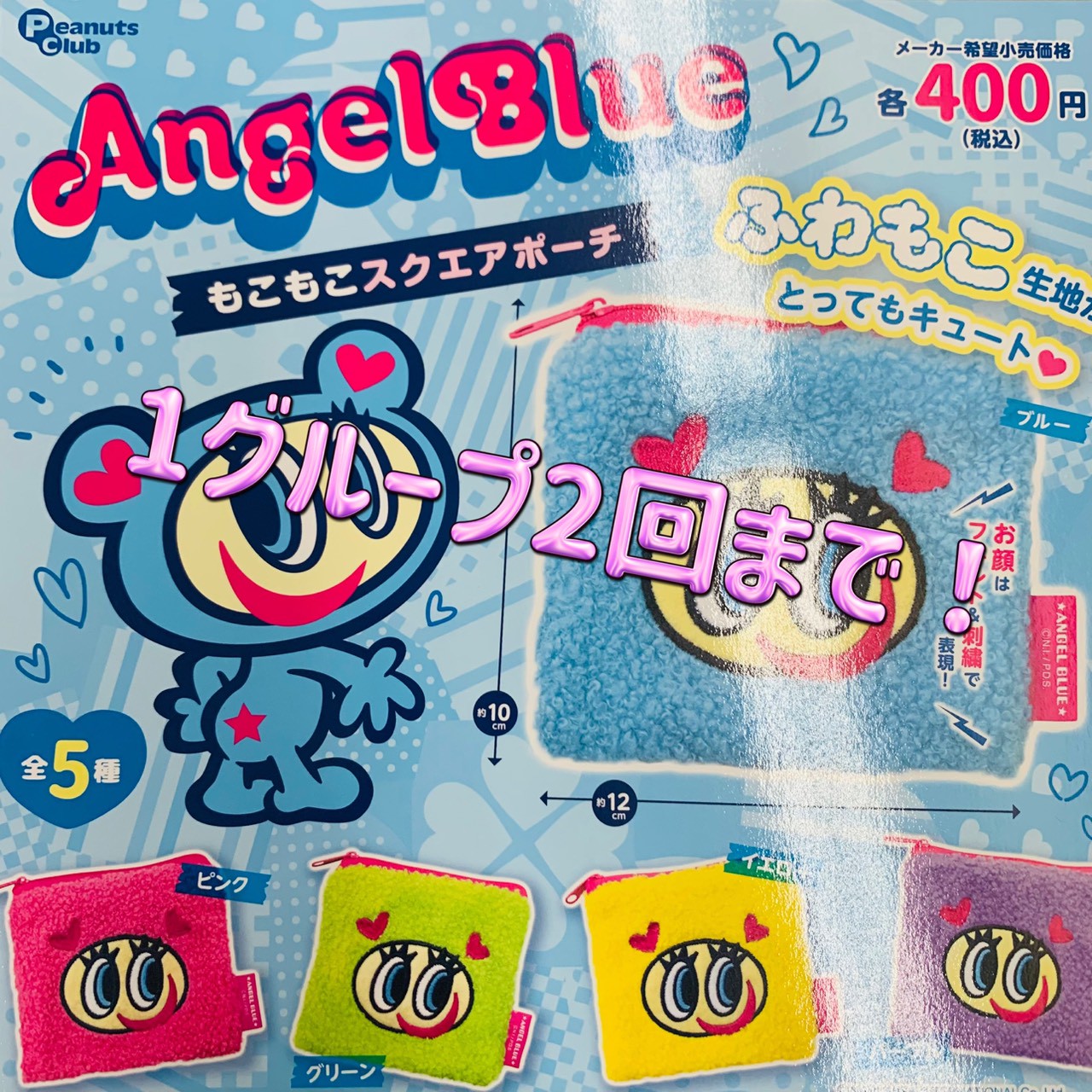 〇エンジェルブルー もこもこスクエアポーチ