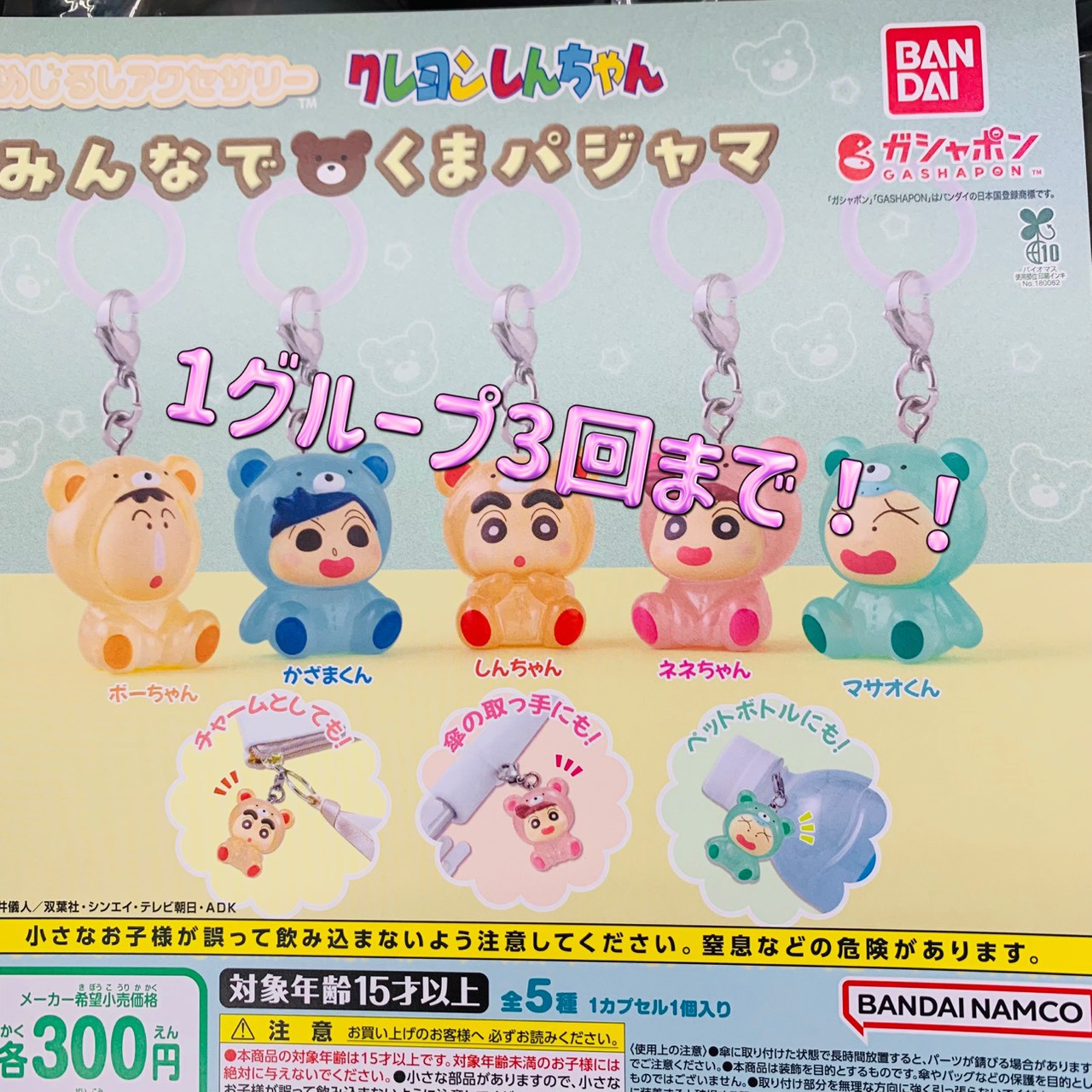 〇クレヨンしんちゃん めじるしアクセサリー みんなでくまパジャマ