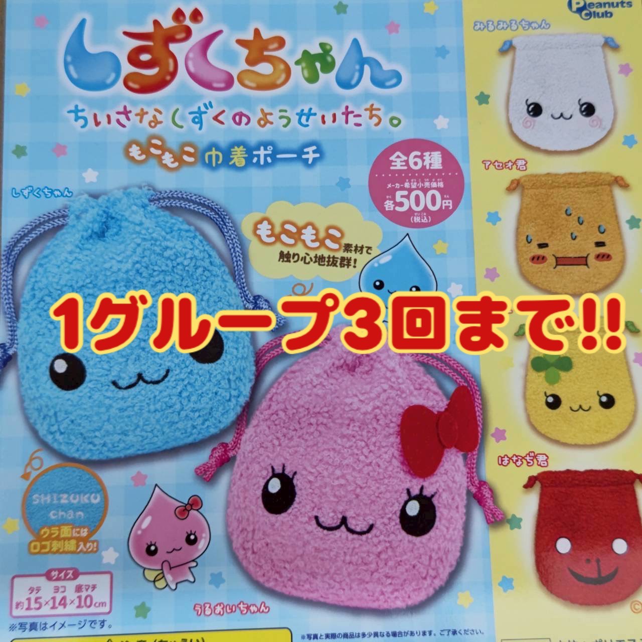 ○しずくちゃん 小さなしずくのようせいたち。 モコモコ巾着ポーチ
