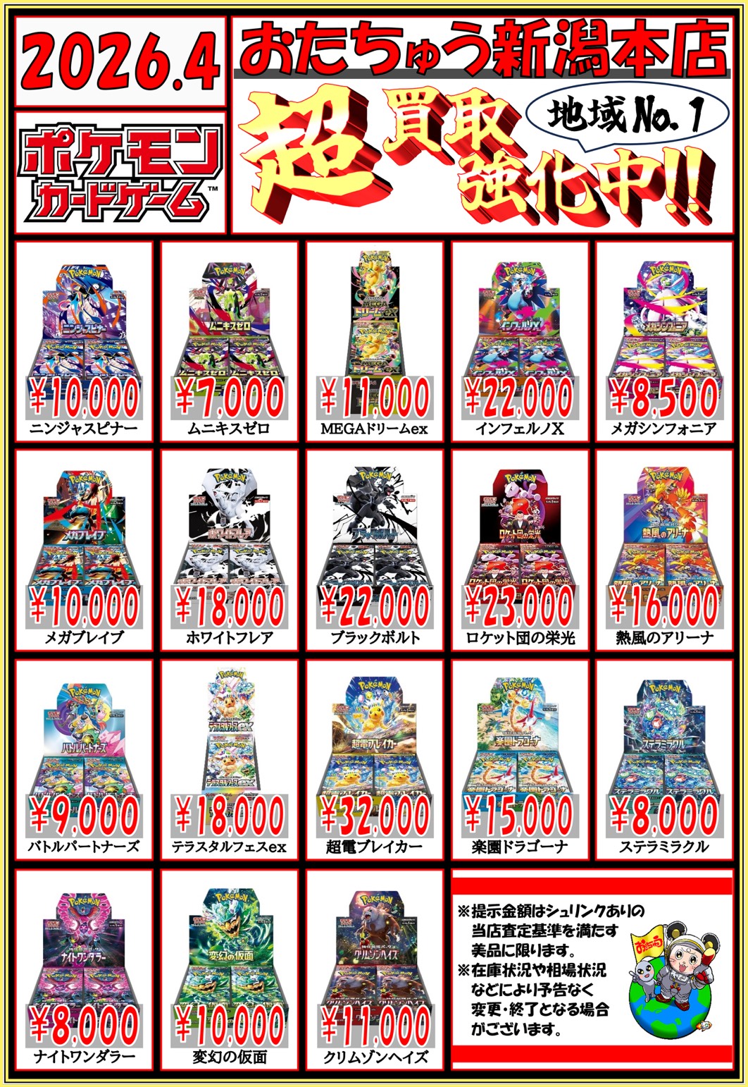 ★ポケカBOXの買取チラシを更新致しました!★ カード 買取情報 2026年4月14日 ポケカBOXの買取チラシを更新致しました! この機会に是非お持ち込みください!! ※2026/4/14現在の価格となります。 在庫状況・状態によってお値段が変動いたします。予めご了承ください。 **************** こちら↓もぜひチェックしてみてくださいね🎵 ・最新のイベント情報はこちら ・最新の買取情報はこちら