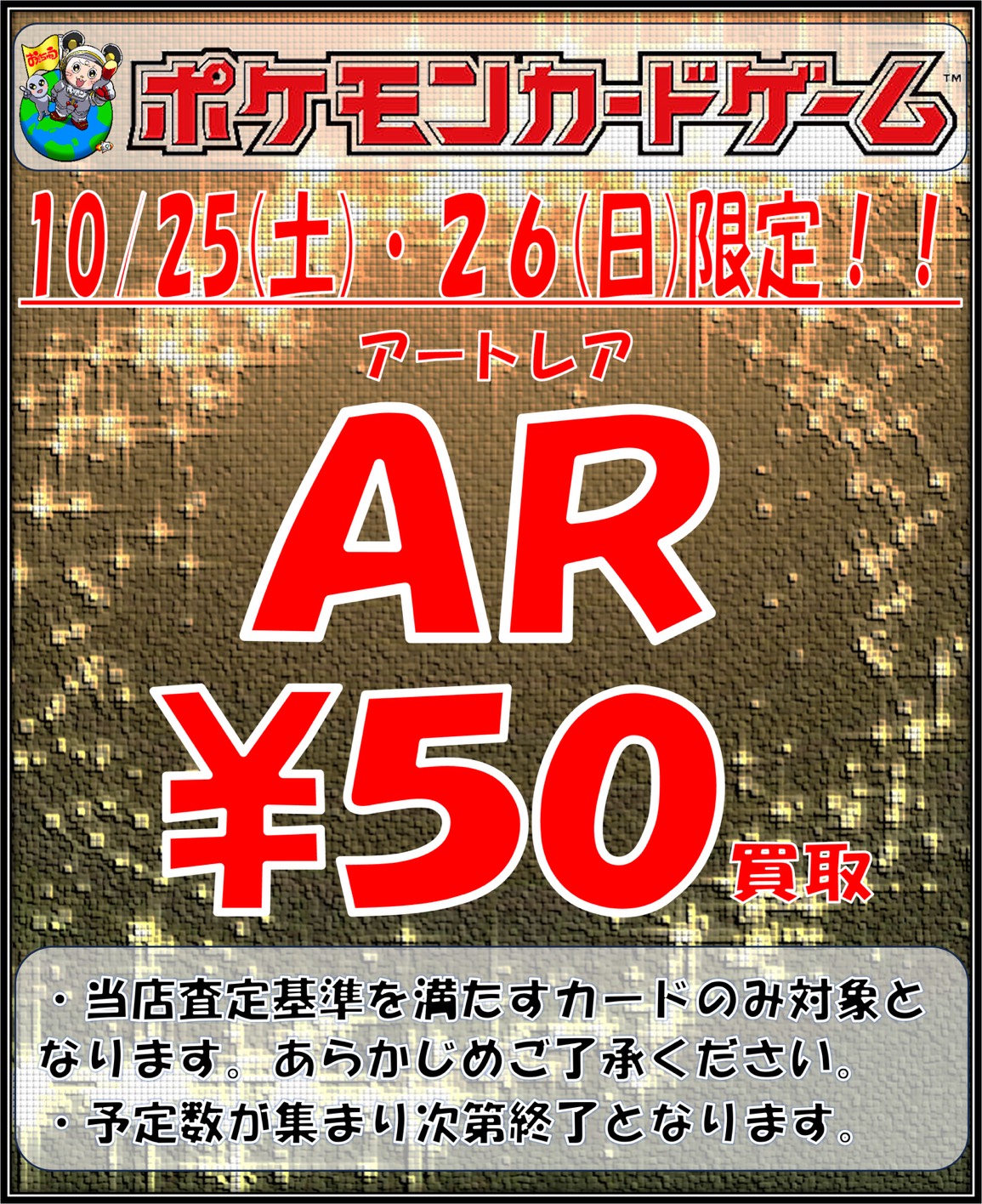 今週末10/25(土)・26(日)限定でポケカアートレアを最低50円で買取いたします🔥