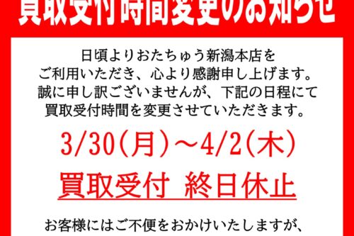 3/30~4/2◆買取受付時間についてのお知らせ