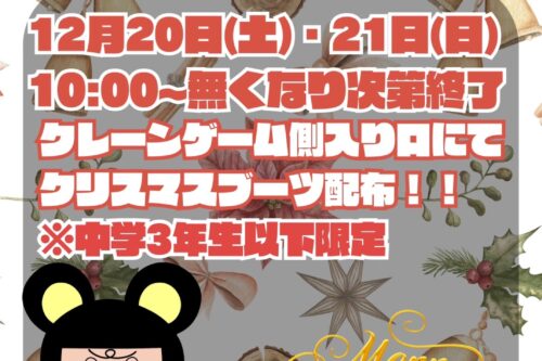 【12月20日・12月21日】🎄クリスマスブーツ配布!🎄