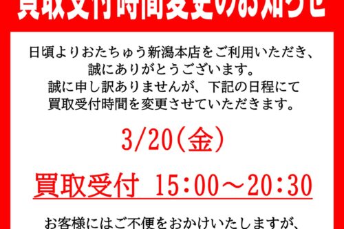 ★【お知らせ】3/20買取受付時間についてのお知らせ★