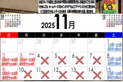 9/16(火)◆買取スタッフ不在の為買取時間を変更いたします。◆