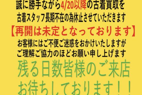 古着20日以降の買取について。...